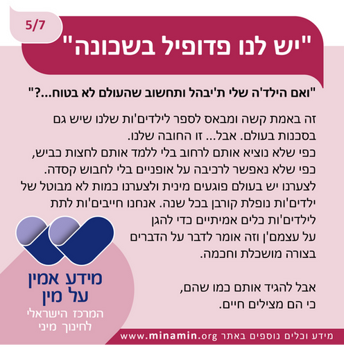 אנחנו צריכים לקחת בחשבון שלצערינו הילדיםות שלנו (בנות ובנים כאחד) עלולים לפגוש פוגע ולכן, בדיוק כפי שנלמד אותם על זהירות בדרכים לפני התאונה וכדי למנוע אותה, כך נלמד אותם כללי בטיחות וזהירות כדי לצמצם סיכון.